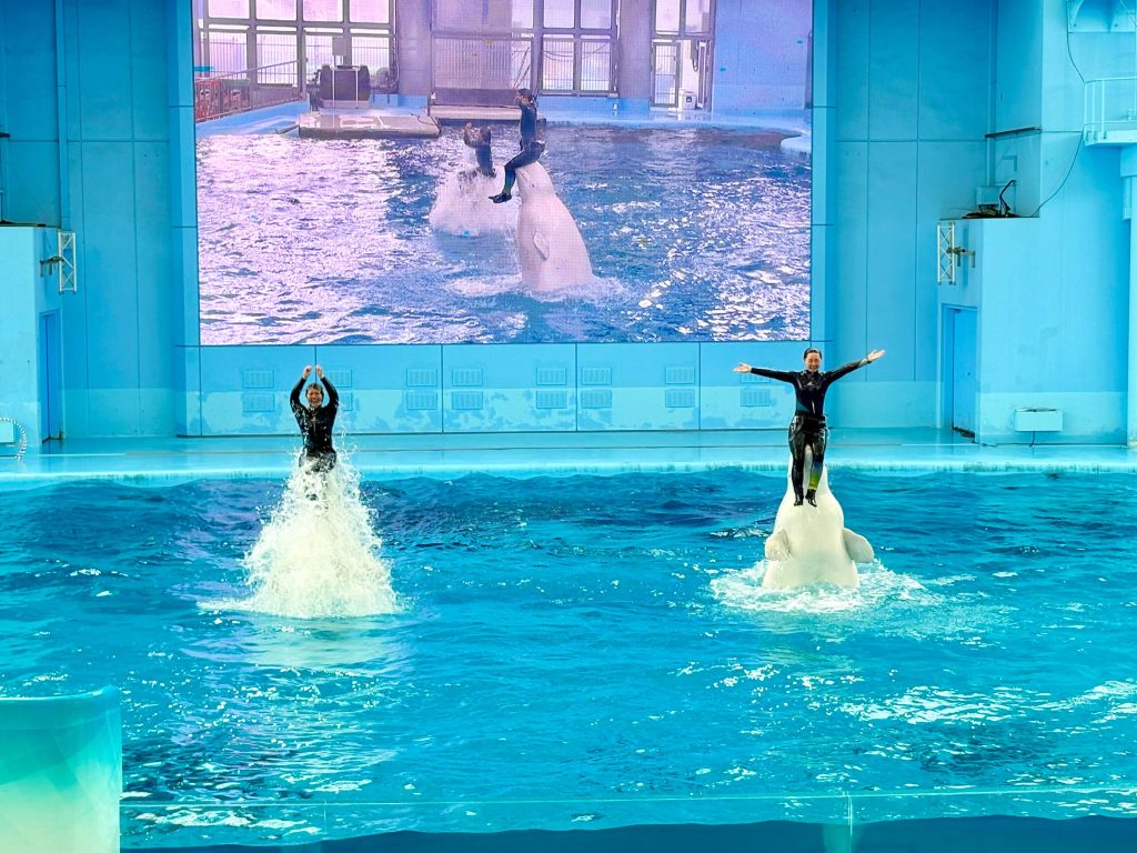 The dolphin show is the highlight of the Aqua Museum (although I find the Beluga whale performance that precedes it equally fascinating). These ‘Animal Life Live‘ shows last about 20 minutes and are incredibly popular, so arrive at least 30 minutes early to secure good seats. The seating arrangement makes a massive difference to your experience, especially on weekends.